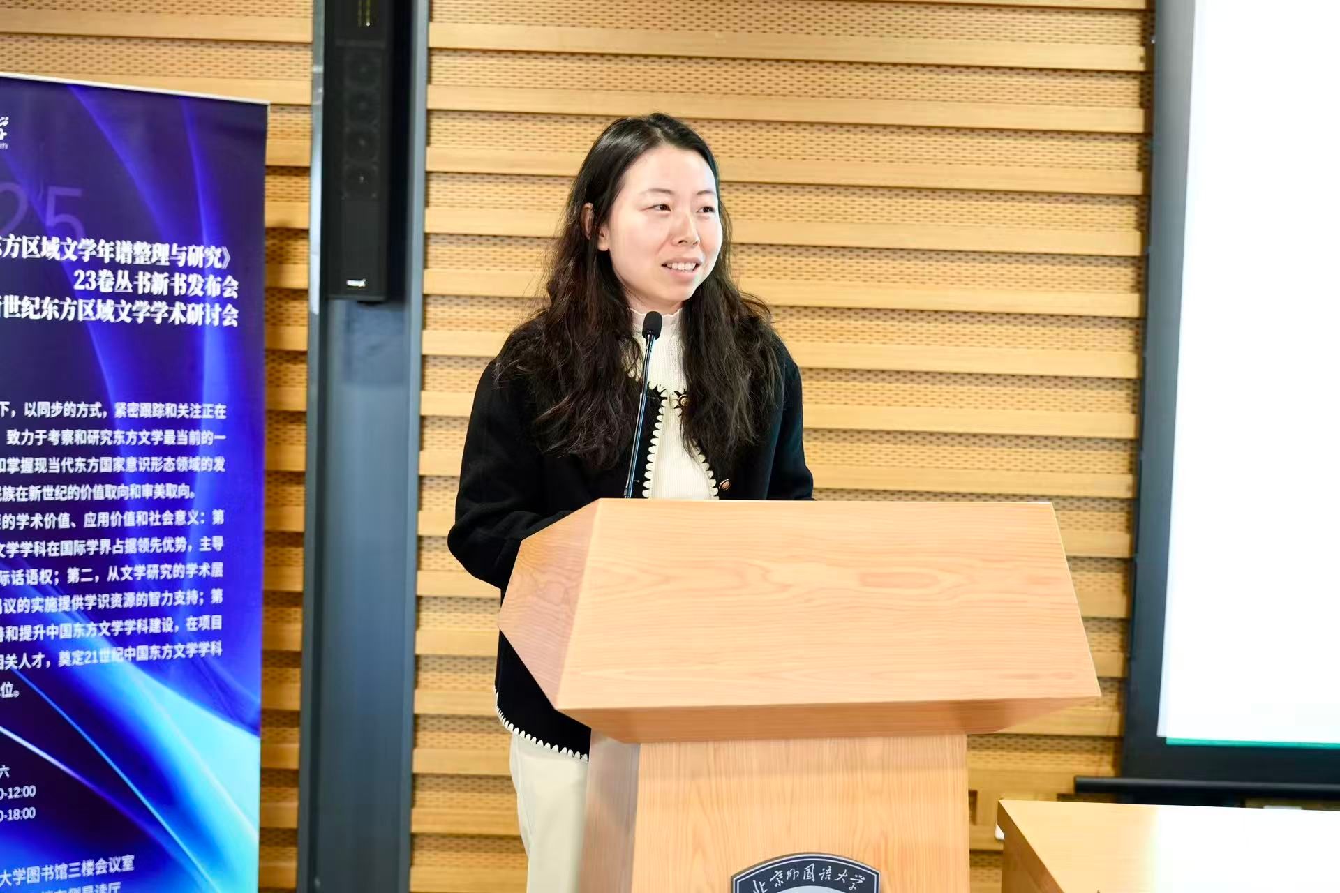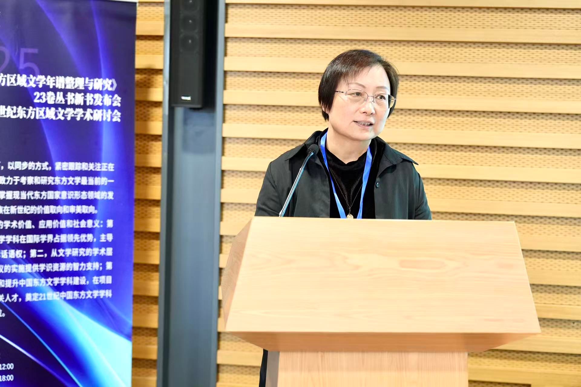 院长苏莹莹主持。苏莹莹向参加会议的领导、专家学者和各界人士表达了感谢,并指出,该成果仰赖多方鼎力支持,以前瞻性的学术视野,系统整合了21世纪前20年的东方文学资料,成功构建了一个立足中国、客观平等的东方文学研究新体系。