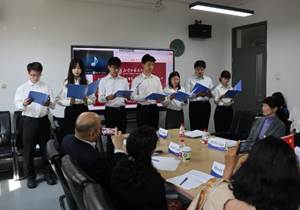 党总支书记许晔、国际交流与合作处副处长姜颖等在主楼三层会议室与公使一行举行座谈。