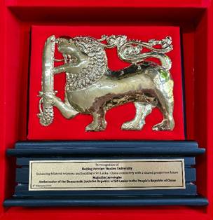 斯里兰卡驻华使馆一向重视与我校在文教领域的合作,历任大使都非常关心僧伽罗语专业的发展。此次我校获颁使馆“中斯合作贡献”荣誉奖章,不仅是对过往合作成果的高度认可,更为未来在中斯建交70周年新起点上,进一步深化两国高等教育与人文交流合作奠定了坚实基础。