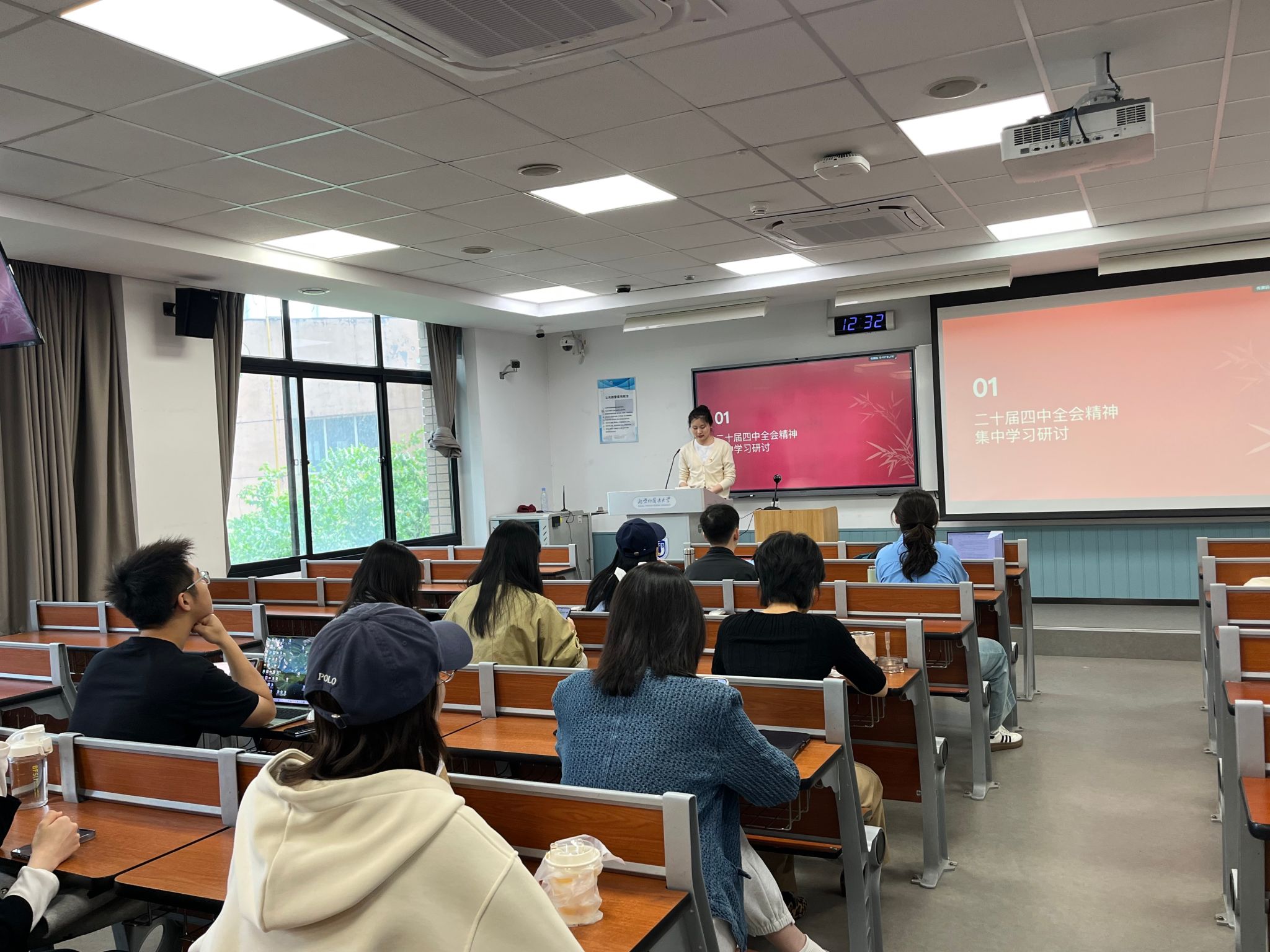 第二研究生党支部在逸夫楼203教室开展四月理论学习活动。会议由党支部书记李源毓主持。支部成员围绕二十届四中全会精神进行研讨,分享“对象国眼中的中国两会”,并对近期“正确政绩观”的学习进行讨论。